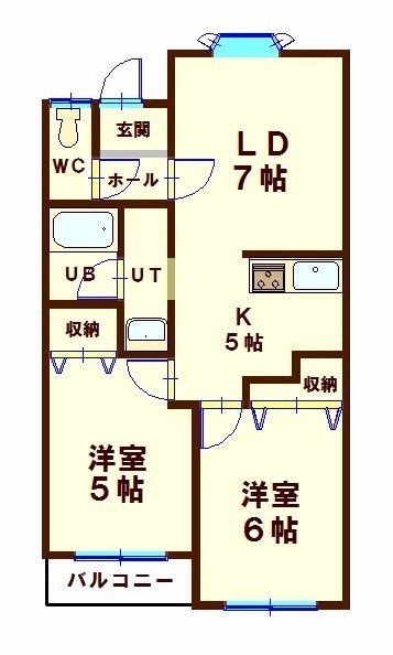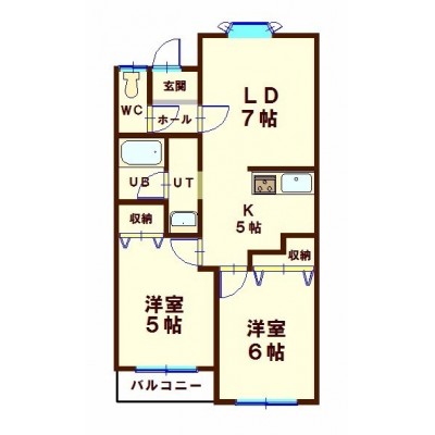 2LDK└ 2階:LD7帖 洋室6帖 洋室5帖 K5帖
