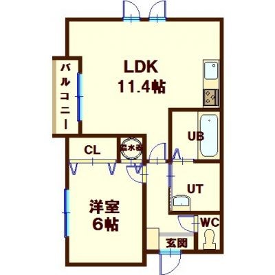 1LDK(42.44m²)└ LDK11.4帖 洋室6帖