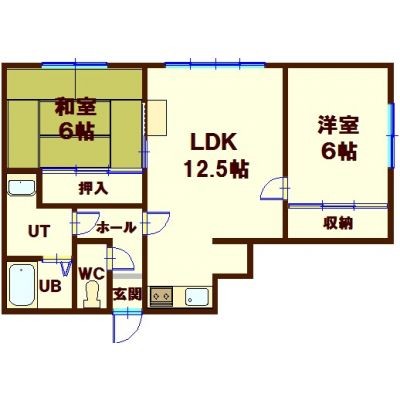 2LDK└ LDK12.5帖 洋室6帖 和室6帖