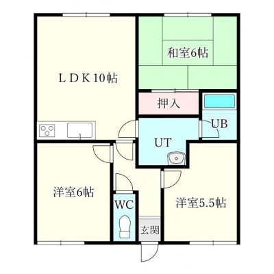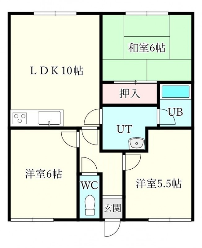 3LDK(61.56m²)└ LDK10帖 和室6帖 洋室5.5帖 洋室6帖