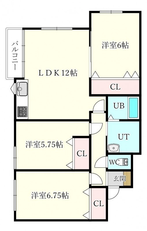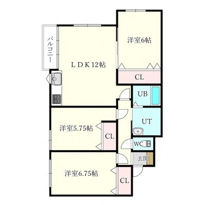 3LDK(71.55m²)└ LDK12帖 洋室6.75帖 洋室6帖 洋室5.75帖