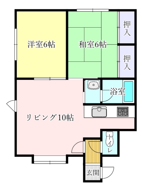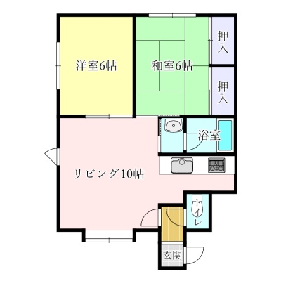 2LDK(57.67m²)└ LDK10帖 K2帖 洋室6帖 和室6帖