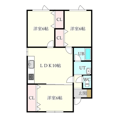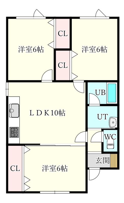 3LDK(61.15m²)└ LDK10帖 洋室6帖 洋室6帖 洋室6帖