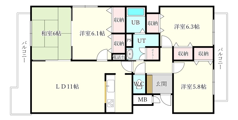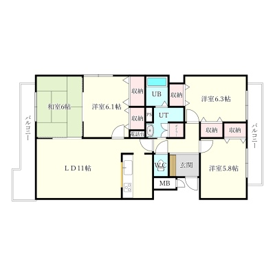 4LDK(82.4m²)└ LD11帖 和室6帖 洋室6.1帖 洋室6.3帖 洋室5.8帖