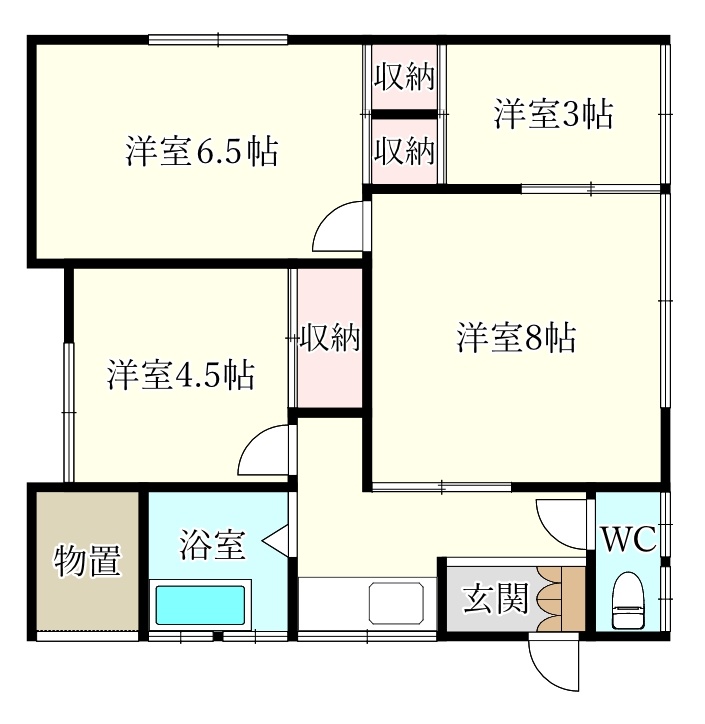 3DK(54.92m²)└ DK8帖 洋室3帖 洋室6.5帖 洋室4.5帖