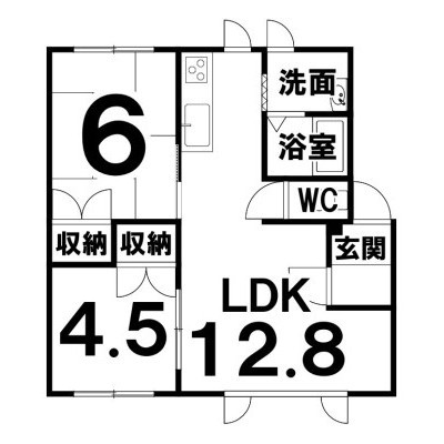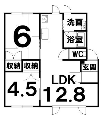 2LDK(49.68m²)└ LDK12.8×洋4.5×和6