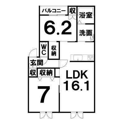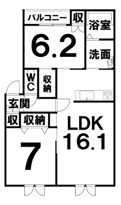2LDK(65.88m²)└ LDK16.1×洋7×洋6.2