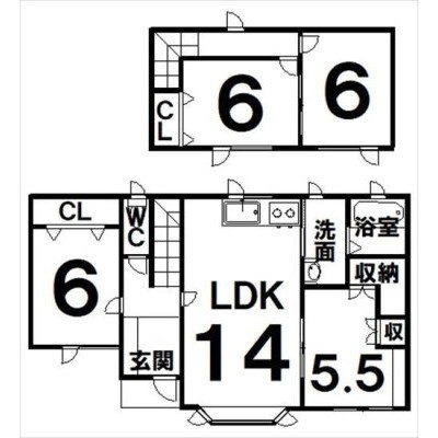 4LDK(93.49m²)└ LDK14×洋6×洋5.5×洋6×洋6