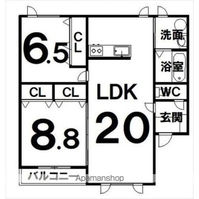 2LDK(74.02m²)└ LDK20×洋8.8×洋6.5
