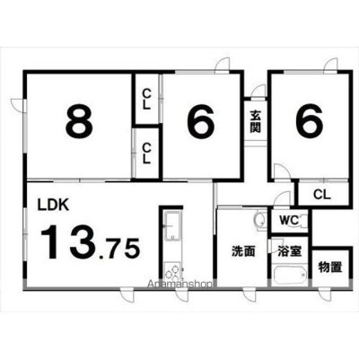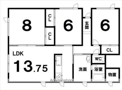 3LDK(78.93m²)└ LDK13.7×洋8×洋6×洋6