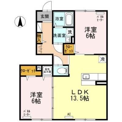 2LDK(59.46m²)└ LDK13.5×洋6×洋6
