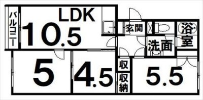 3LDK(59.84m²)└ LDK10.5×洋5.5×洋5×和4.5