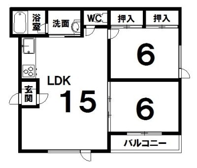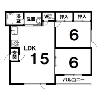 2LDK(48.6m²)└ LDK15×洋6×洋6