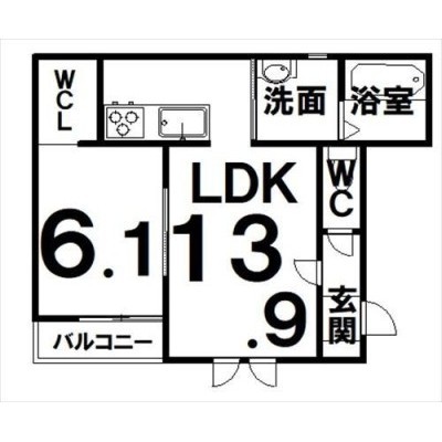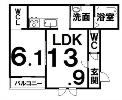 1LDK(47.61m²)└ LDK13.9×洋6.1