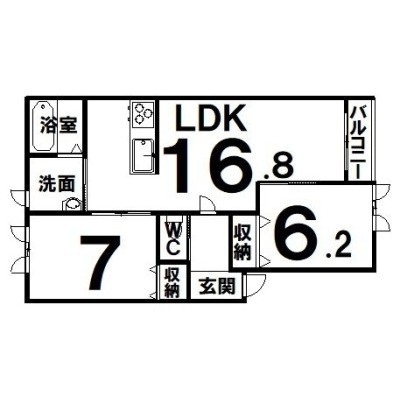 2LDK(65.68m²)└ LDK16.8×洋7×洋6.2