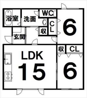 2LDK(63.97m²)└ LDK15×洋6×洋6