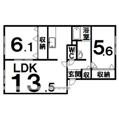 2LDK(57.55m²)└ LD10.5×K3.5×洋6.1×洋5.6