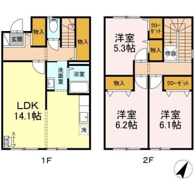 3LDK(84.56m²)└ LDK14.1×洋6.1×洋6.2×洋5.3