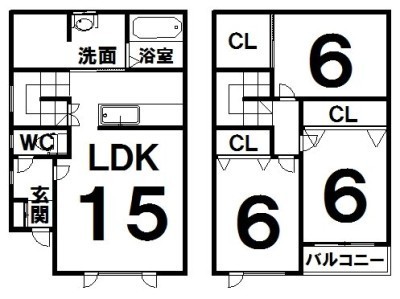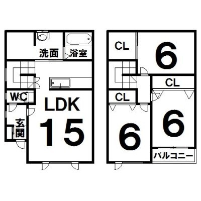 3LDK(85.7m²)└ LDK15×洋6×洋6×洋6