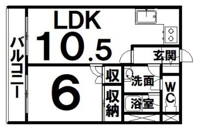 1LDK(37.5m²)└ LDK10.5×洋6