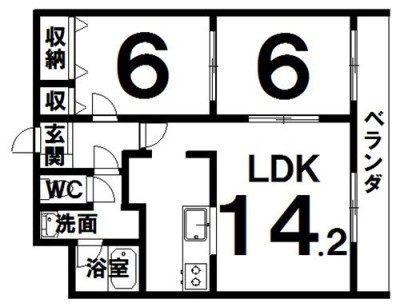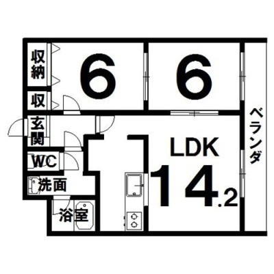 2LDK(59.43m²)└ LDK14.2×洋6×洋6