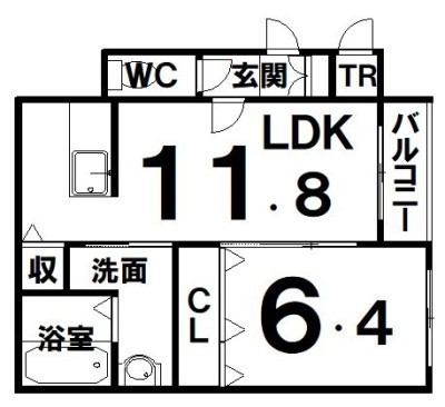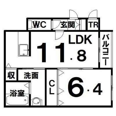 1LDK(43.99m²)└ LDK11.8×洋6.4