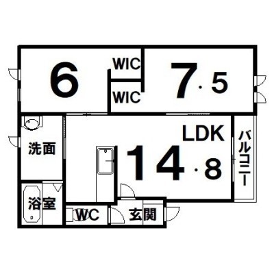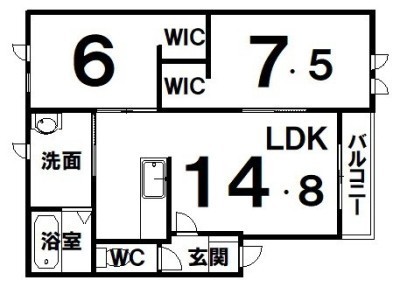 2LDK(64.92m²)└ LDK14.8×洋7.5×洋6
