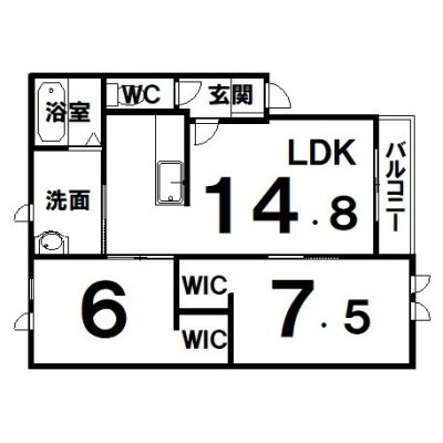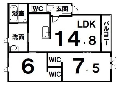 2LDK(64.92m²)└ LDK14.8×洋7.5×洋6