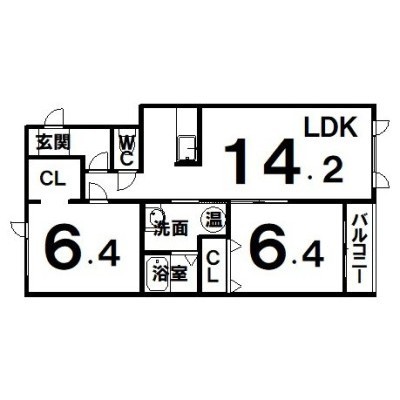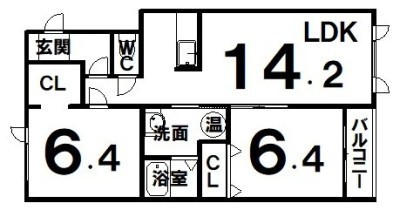 2LDK(63.56m²)└ LDK14.2×洋6.4×洋6.4