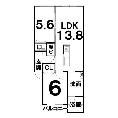 2LDK(57.76m²)└ LDK13.8×洋5.6×洋6