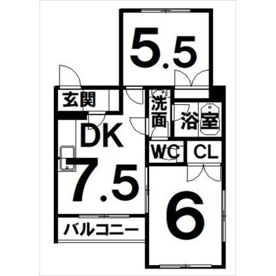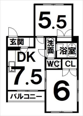 2DK(40.69m²)└ DK7.5×洋5.5×洋6