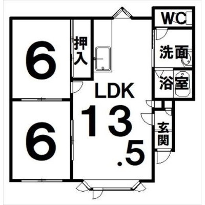 2LDK(54.67m²)└ LDK13.5×洋6×洋6