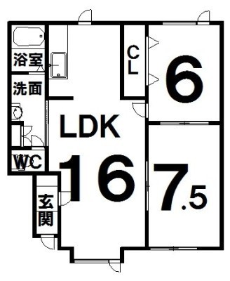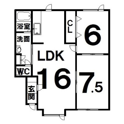 2LDK(60.29m²)└ LDK16×洋6×洋7.5
