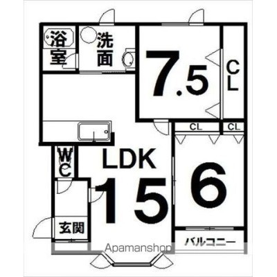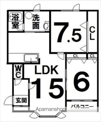 2LDK(62.8m²)└ LDK15×洋6×洋7.3