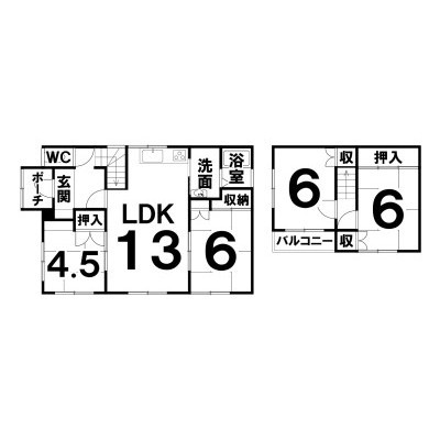 4LDK(81.81m²)└ LDK13×和4.5×和6×和6×洋6