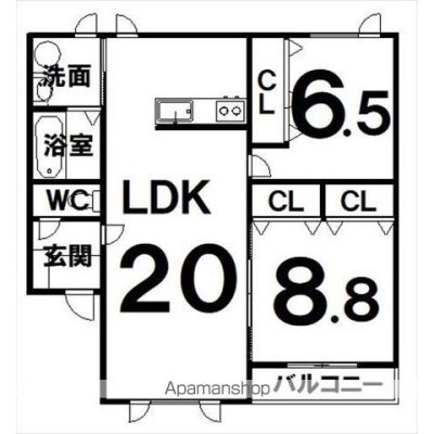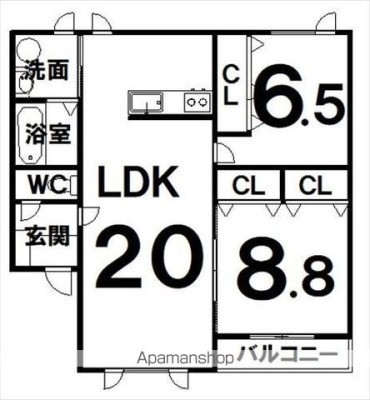 2LDK(74.02m²)└ LDK20×洋6.5×洋8.8