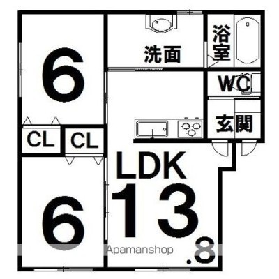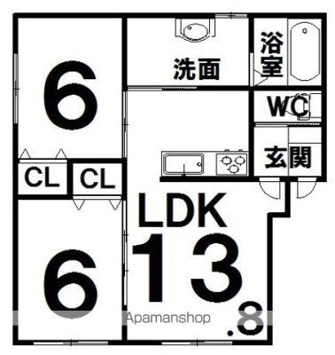 2LDK(57.3m²)└ LDK13.8×洋6×洋6