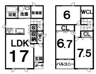 3LDK(92.17m²)└ LDK17×洋7.5×洋6.7×洋6