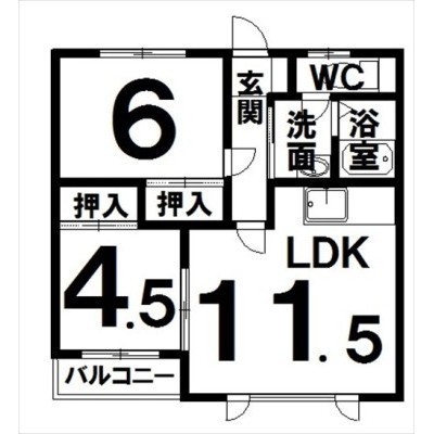 2LDK(49.41m²)└ LDK11.5×洋4.5×和6