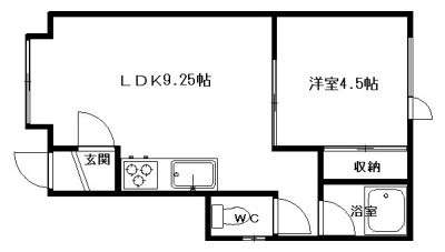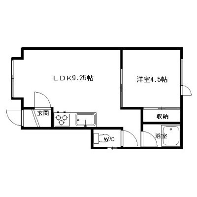 1DK(30m²)└ DK9.2×洋4.5