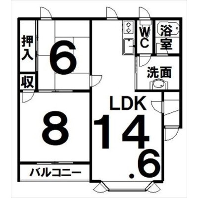 2LDK(59.87m²)└ LDK14.6×洋8×和6