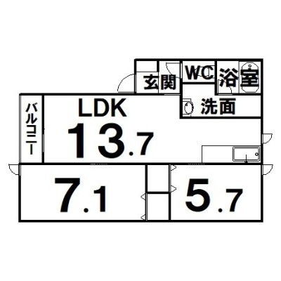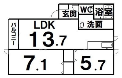 2LDK(59.46m²)└ LDK13.7×洋7.1×洋5.7