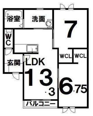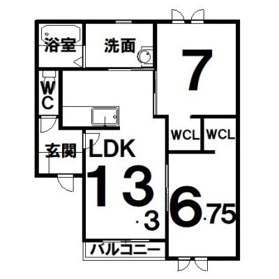 2LDK(62.27m²)└ LDK13.3×洋7×洋6.7