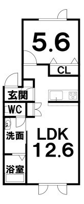 1LDK(40.78m²)└ LDK12.6×洋5.6