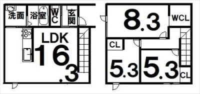 3LDK(86.13m²)└ LDK16.3×洋8.3×洋5.3×洋5.3