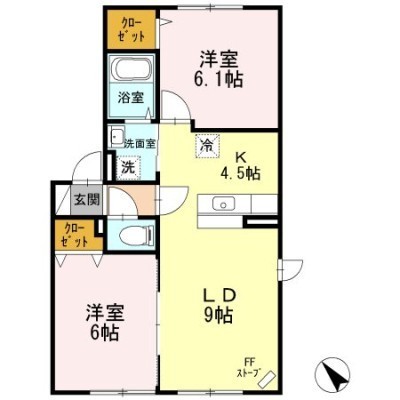 2LDK(53.79m²)└ LD9×K4.5×洋6×洋6.1