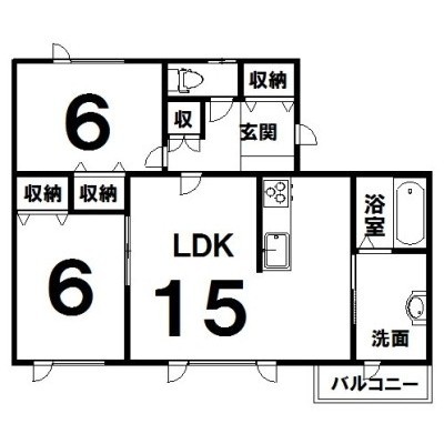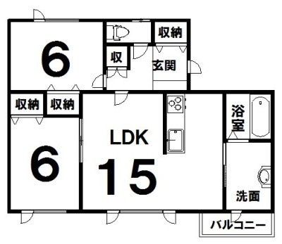 2LDK(62m²)└ LDK15×洋6×洋6
