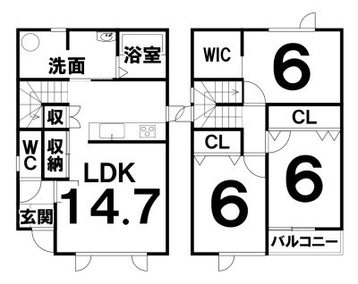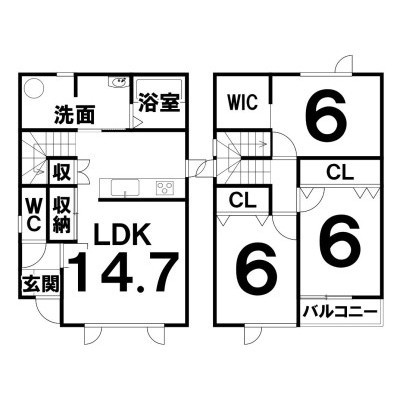 3LDK(86.33m²)└ LDK14.7×洋6×洋6×洋6