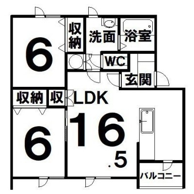 2LDK(63.63m²)└ LDK16.5×洋6×洋6