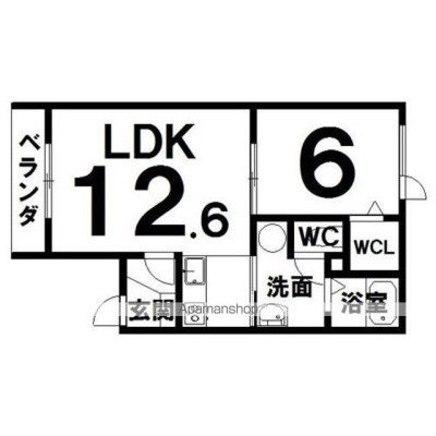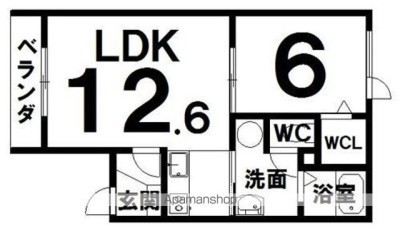 1LDK(43.47m²)└ LDK12.6×洋6